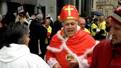 14 mar 2013 El «Papa de las preferentes» pide la devolución de los ahorros Afectados de Vigo organizan una original protesta eclesiástica E.V.PITA