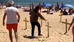 «Una cosa es la política y otra que los niños piensen que esto es un cementerio», les espetó. Varios bañistas retiraron las cruces ante los aplausos de algunos vecinos