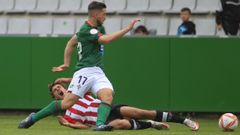 El filial no aprovechó sus oportunidades en el primer tiempo y la derrota ante el Racing (0-1) obliga a los celestes a ganar en Logroño para jugar el play-off