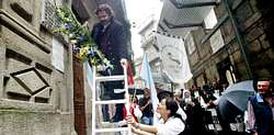 A Federación de Veciños fixo unha ofrenda ante o lugar no que se editou «Cantares gallegos» A praza da Princesa acolleu unha lectura de textos do homenaxeado deste ano, Lugrís Freire