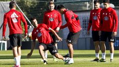 03 oct 2017 Lucas se entrena en el gimnasio en la vuelta al trabajo del Dépor El delantero sufre un golpe en la pierna izquierda y no ha participado en la sesión Pedro Barreiros