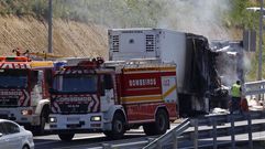 25 may 2017 Arde un camión en la AP-9, en Sigüeiro A última hora de la tarde, los bomberos volvieron al lugar para sofocar el fuego de un coche