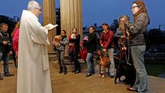 17 ene 2013 Vigo inicia tímidamente la bendición de mascotas por San Antón Menos de una decena de personas acudieron con sus perros al llamamiento realizado por el párroco de la iglesia de La Soledad B. R. SOTELINO