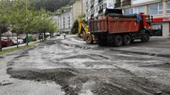 12 may 2021 Comienza la reparación provisional del «territorio fochancas» de Viveiro Maquinaria pesada trabaja en la zona de aparcamiento que hay en la Variante