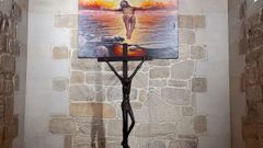 Manuel Estévez, comisario del proyecto, ha querido acompañar el tríptico de Xavier Lemos con la escultura de Cristo que siempre le llamó la atención en sus esporádicas visitas al estudio cambadés