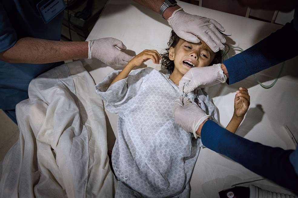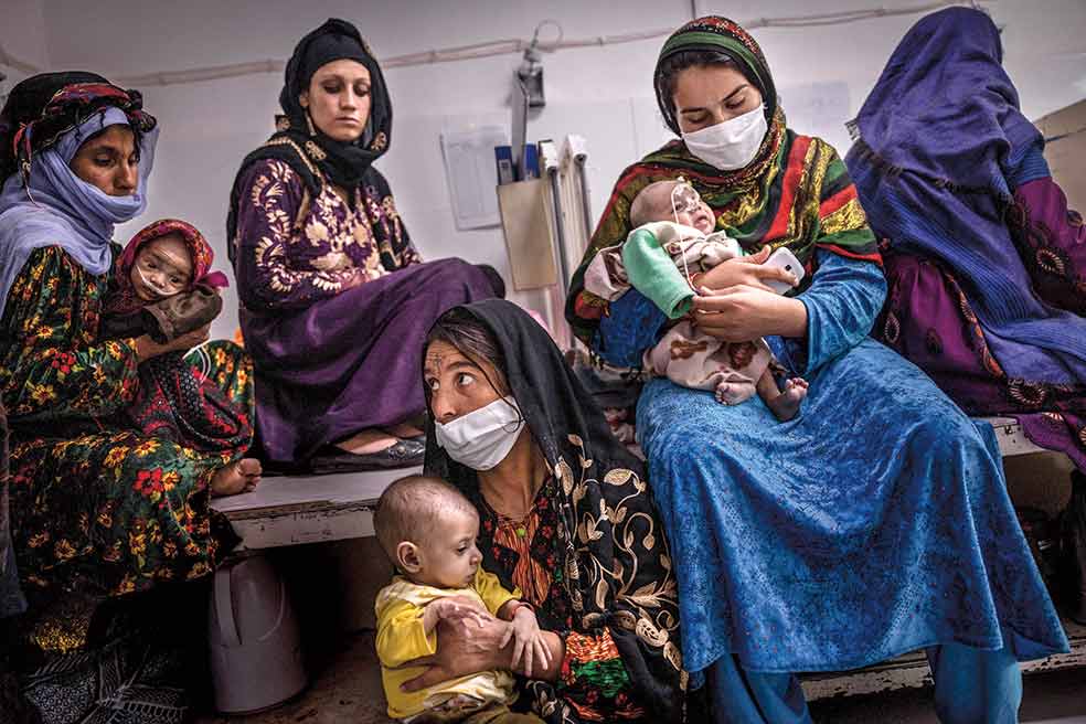 Fatemah y su hija Asheg, de 3 meses (en el suelo), esperan junto con otras madres y sus hijos en el principal hospital de Herat, donde personal de Médicos Sin Fronteras trata a los niños desnutridos. El fotógrafo de este reportaje cuenta que ha conocido familias que, para sobrevivir, tienen que vender a sus hijos. La velocidad del colapso, dice, no fue prevista ni por los observadores más pesimistas.