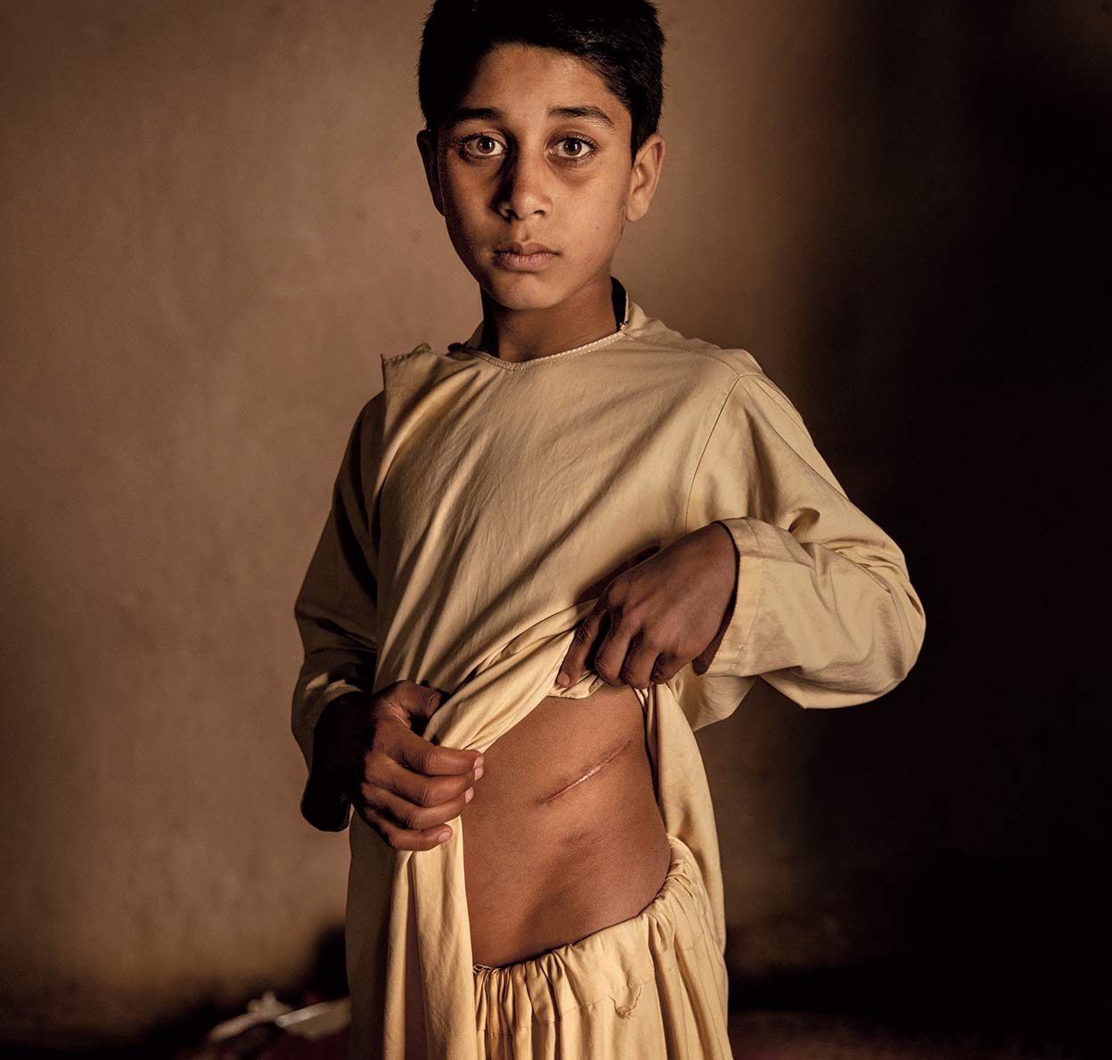 Los padres de Khalid (en la foto de arriba) no tenían dinero para alimentar a sus once hijos, así que en un intento desesperado por salvarlos vendieron el riñón de uno de ellos. El del padre no lo quisieron, por viejo. Khalid era muy bueno jugando al fútbol. Ahora tiene dolores y ha perdido fuerza. La familia recibió 3500 dólares (la mayoría, para pagar deudas); una suma que su padre tardaría años en ganar en caso de tener trabajo. La renta media anual del países de 500 dólares.