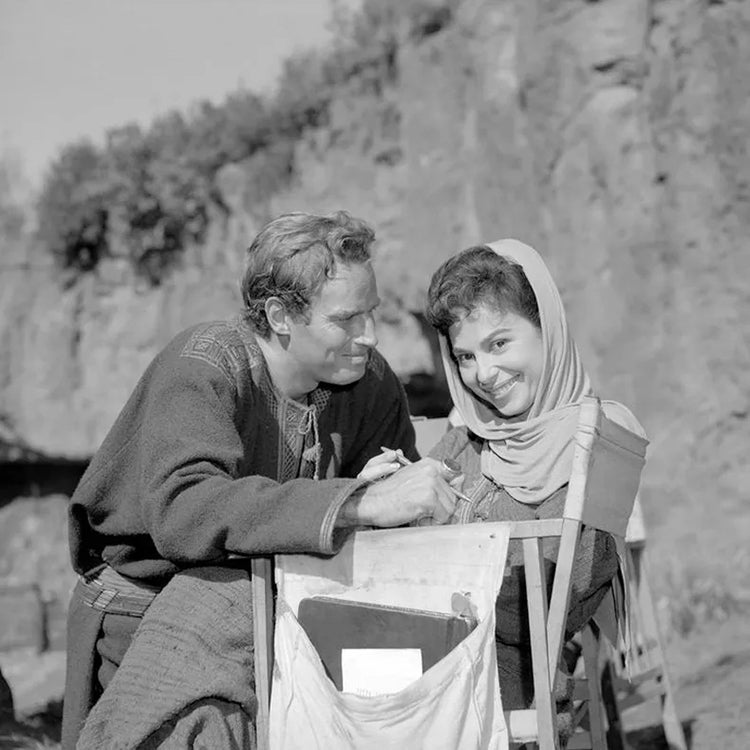 Aunque hoy se nos antoje casi imposible pensar en otro actor para el papel, Charlton Heston no fue la primera opción para protagonizar Ben-Hur. La lista de estrella que lo rechazaron es extensa: Burt Lancaster («el guion es aburrido y menoscababa al cristianismo»), Paul Newman («no tengo piernas para usar una túnica»), Marlon Brando, Rock Hudson, Geoffrey Horne e, incluso, Leslie Nielsen, además de varios actores italianos. Kirk Douglas fue de los pocos que se postuló para la tarea y, gracias a que fue rechazado, pudo meterse poco después en la piel del gladiador Espartaco. La elección de Heston fue finalmente anunciada el 22 de enero de 1958 con un salario de 250.000 dólares. En la imagen, el actor en una prueba de vestuario, una de las categorías –‘diseño de vestuario en color’, por aquel entonces– en las que la cinta obtuvo uno de sus 11 Oscar. Para confeccionar los trajes, la diseñadora británica Elizabeth Haffenden supervisó a más de cien costureras, artesanos, trabajadores del cuero y diseñadores, y se realizaron incontables pruebas de cámara para asegurarse de reproducir fielmente los colores de los tejidos.