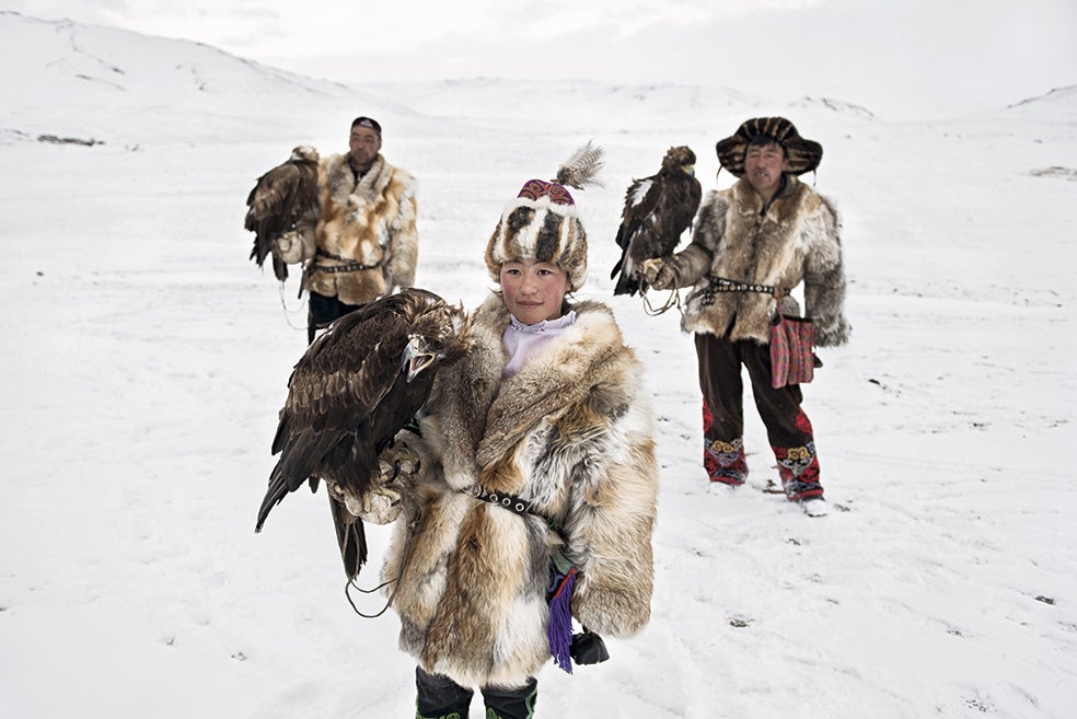 Aikerim posa con su padre y su tío, que la apoyan, pero con limitaciones... Como la mayoría de las chicas, no podrá continuar con la cetrería al cumplir los 18 años. La familia quiere que vaya a la universidad, en la ciudad, o se case y se dedique a la familia.