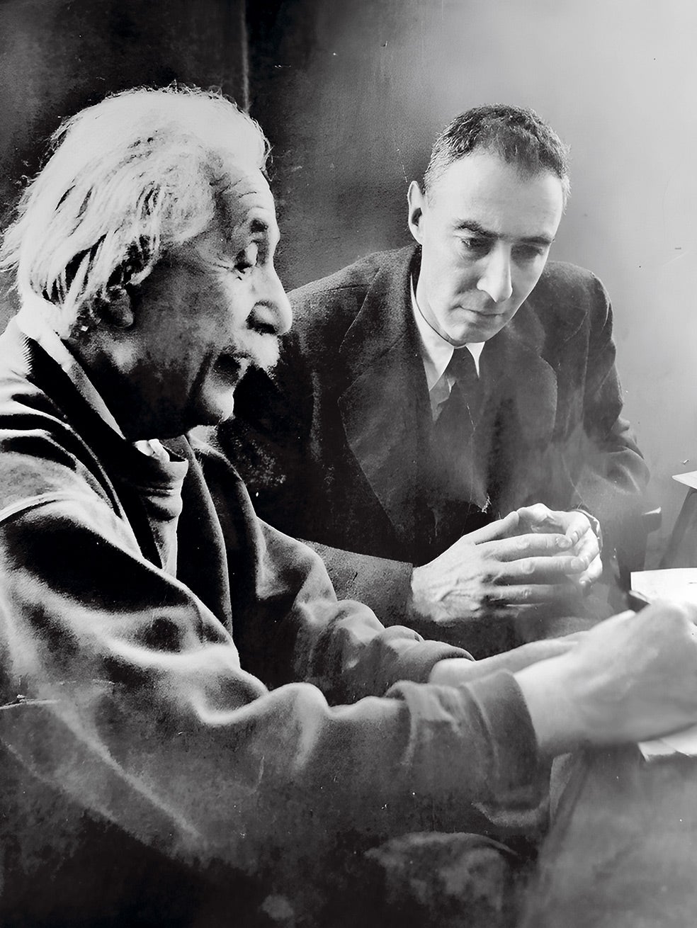 ¿Cómo fue la verdadera relación entre ambos? De lo más cortés. Oppenheimer, sabiendo que a Einstein le encantaba la música clásica, le instaló una antena en su modesta vivienda de Princeton y le regaló una radio. Pero no puede decirse que fueran amigos. Oppenheimer, como muchos intelectuales de su generación, veía a Einstein «como el santo patrón de la física, pero no como a un científico en activo». Einstein estaba a disgusto con la física cuántica y ni siquiera creía en la existencia de los agujeros negros.