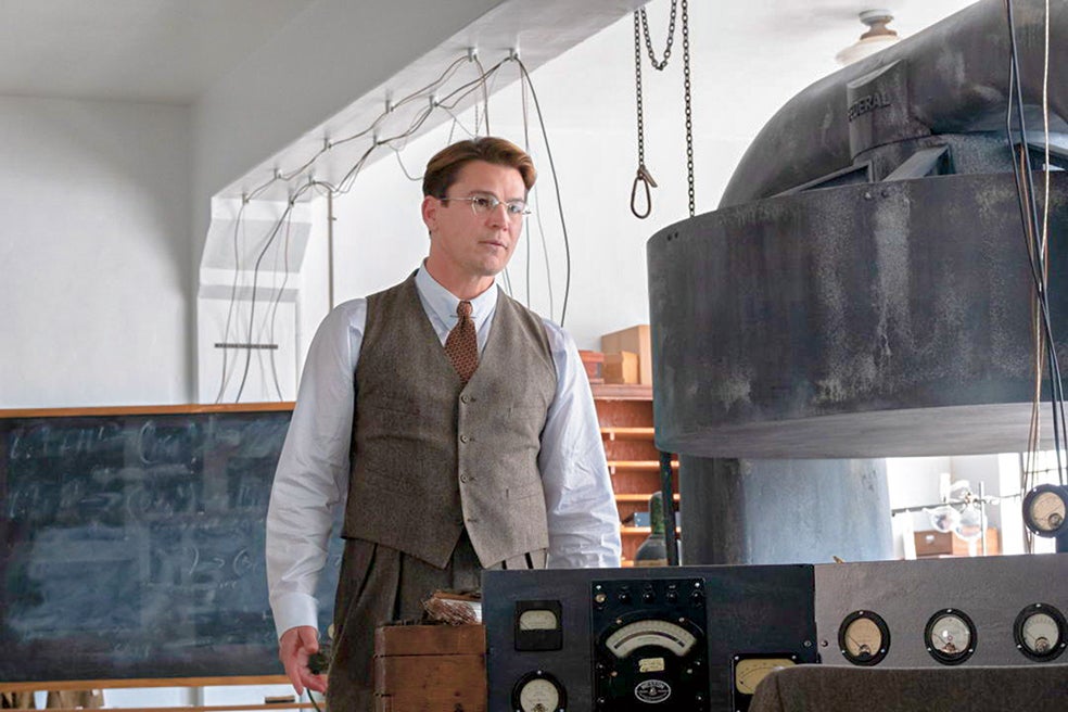 El actor Josh Harnett (aquí en un pasaje de la película de Christopher Nolan) da vida a Ernest Lawrence, que en la imagen superior que abre este reportaje aparece en el centro, agachado, mientras Oppenheimer muestra ciertos detalles del ciclotrón, un acelerador de partículas. Lawrence —premio Nobel de Física en 1939— fue el inventor de ese acelerador y montó el laboratorio para enriquecer uranio. Pese a los riesgos para su salud y la de los otros científicos, se negó a sindicar a los empleados, como proponía Oppenheimer. En 1958, y aunque sufría varias enfermedades, aceptó representar a la Casa Blanca en la Conferencia de Desarme de Ginebra. Por el camino sufrió un ataque de colitis ulcerosa. Le extirparon un metro de intestino, pero murió semanas después. Por eso no declaró en la vista contra Oppenheimer.