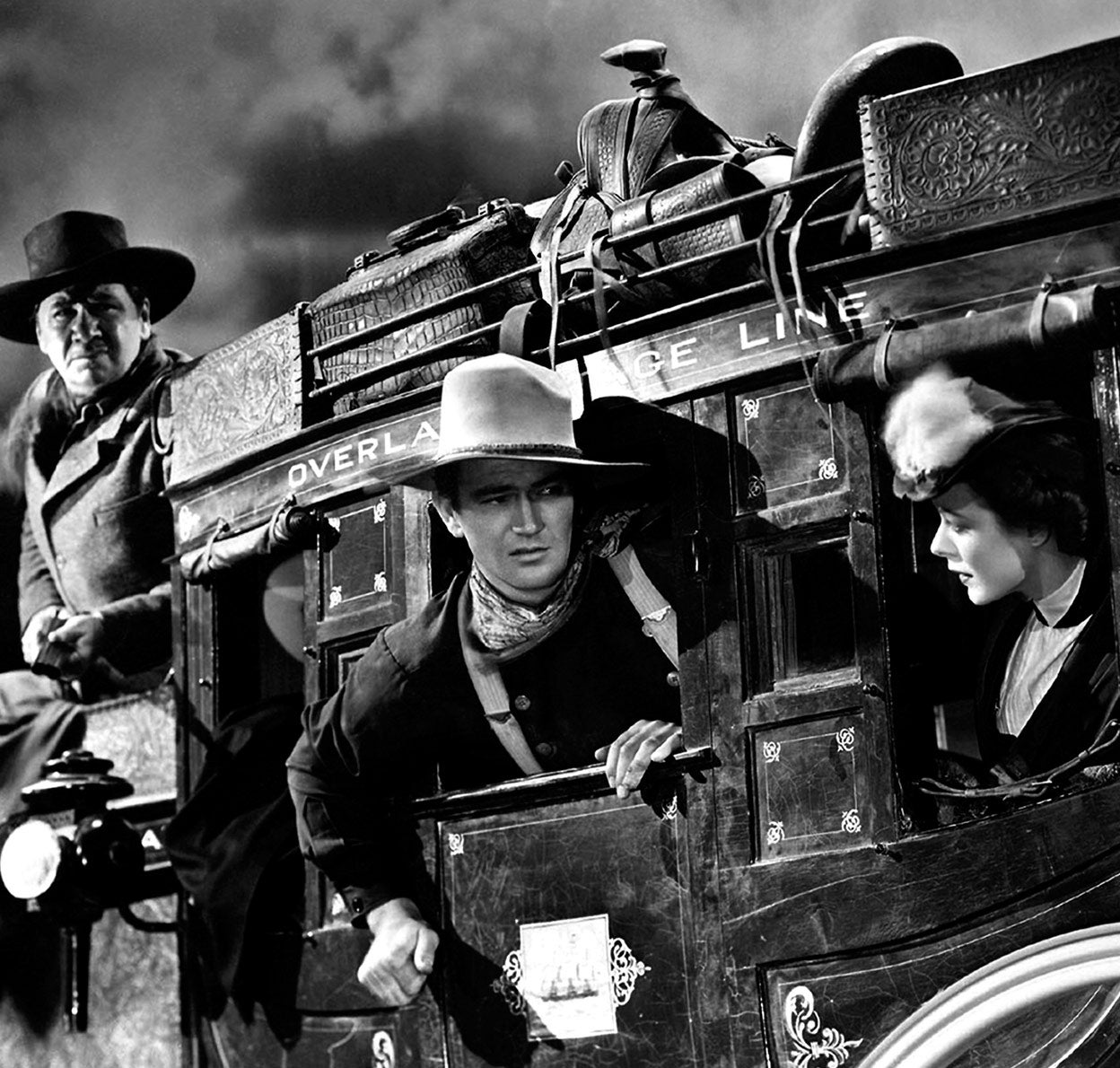 Las interpretaciones del siempre hilarante Andy Devine, el nobiliario y tortuoso John Carradine, el morigerado Donald Meek, la recia y sentimental Claire Trevor ocupan ya un lugar privilegiado en el cielo del celuloide. Pero La diligencia, además de estrenar la leyenda de John Wayne, establece otro hito inaugural: por primera vez Monument Valley, basílica sagrada del western, es utilizado como escenario natural de una película. Los indios navajos que habitaban aquellos parajes pronto formarían parte, por derecho propio, de la troupe fordiana; y el rodaje en exteriores, aprovechando la belleza monumental de los promontorios de arenisca que enmarcan el valle, se erigiría en marca de estilo del director. Siguiendo el consejo de Wayne, Ford contrataría para La diligencia al especialista Yakima Canutt, que protagoniza una de las secuencias más memorables del género, pasando de un caballo al galope al tiro de la diligencia, arrastrando los pies por el suelo mientras John Wayne le dispara y, ya por último, soltándose, mientras la diligencia pasa por encima de él. Todo ello rodado en un furioso travelling que arrebata el aliento.