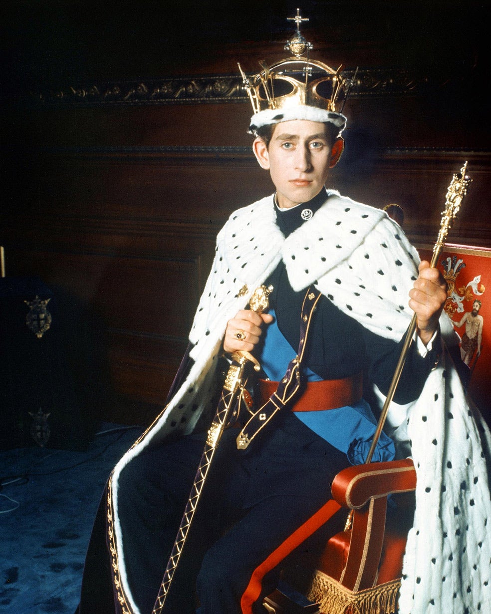 A los 19 años, Carlos fue investido como Príncipe de Gales en el castillo de Caernarfon. Recibió un anillo de amatista, engarzado en oro galés; una espada, una vara de oro y un manto real de terciopelo y armiño. Y una corona un poco peculiar: según contó la reina «parecía un apagador de velas». Estaba decorada con diamantes, eso sí.