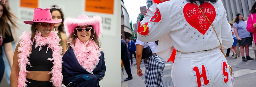 Cada uno representando las diferentes eras que contiene la gira de la artista y de la que cada asistente escoge su favorita: Debut, Fearless, Speak Now, Red, 1989, Reputation, Lover, Folklore, Evermore y Midnights. Un auténtico movimiento visual donde los fans también son protagonistas. Hasta han creado la página web The Eras Tour Wardrobe con ideas de conjuntos –en función de cada era– que se pueden comprar on-line.