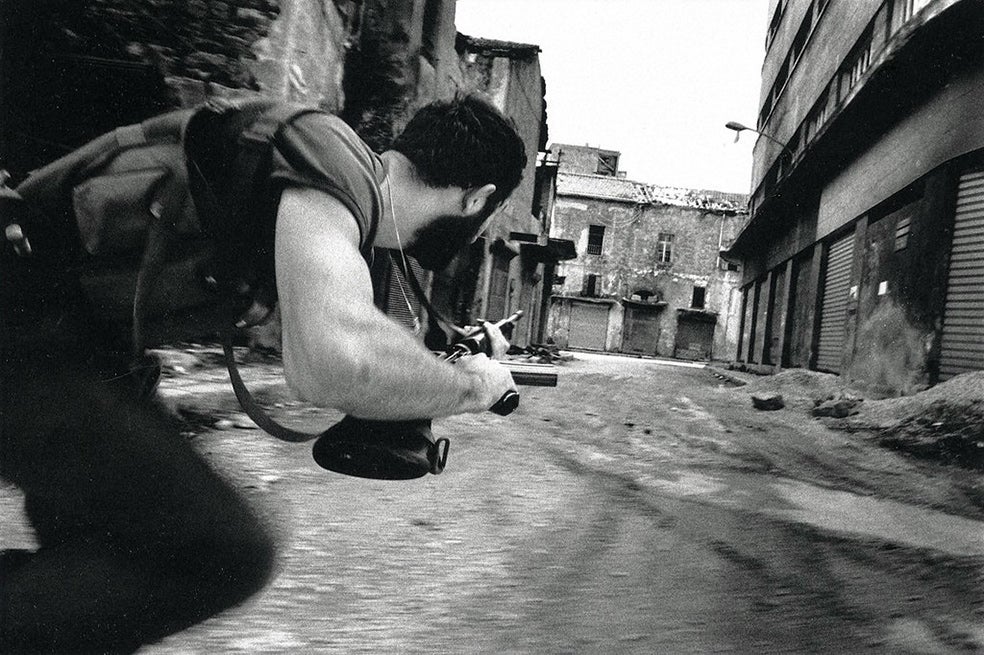 «No es realmente un fotógrafo de guerra, pero hay pocas fotos que muestren mejor que ésta de Depardon una acción bélica, que coloque al espectador en la batalla. Por no hablar del riesgo que entraña... En aquellos años, Beirut era muy peligroso. Después de tomar esta imagen, Depardon y un colega le pidieron a su chófer, quien, extrañamente, ese día iba con alguien al lado, que los llevase hasta otra zona de conflicto. Al regresar, pararon el auto, les quitaron las cámaras y los dejaron en tierra de nadie. Consiguieron regresar al hotel caminando, denunciaron el robo y como consecuencia se produjo un ajuste de cuentas entre grupos cristianos enfrentados. Hubo tres muertos. A Depardon le afectó mucho. Se planteó si todo aquello merecía realmente la pena. Salió del Líbano y se fue a Chipre. Por salvar fotografías como ésta había muerto gente.»
