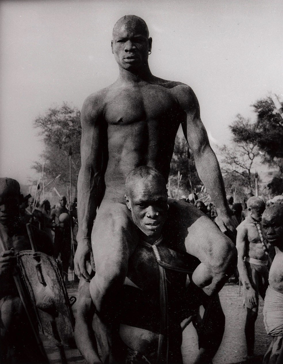 «Rodger fue uno de los primeros fotógrafos que entró en los campos de concentración tras la Segunda Guerra Mundial. Había que retratarlos porque el mundo debía saber lo que había pasado, pero encontró obsceno "meter a los muertos en composiciones fotográficas" y dejó la fotografía de guerra. Poco después se fue a África y durante dos años recorrió en su Land Rover 40.000 kilómetros "para ir a donde el mundo todavía es limpio". Su trabajo más conocido de entonces son los nuba de Kordofan, el grupo más importante de sudaneses no árabes, que vivían aislados en las montañas. Rodger fue el primero en ser testigo de sus torneos de lucha. Años después Leni Riefenstahl, la fotógrafa del Tercer Reich, me contó que fue esta foto lo que la animó a ir a África, pero cuando ella llegó las autoridades musulmanas los obligaban a llevar pantalones de saco que les provocaban todo tipo de enfermedades. El mundo se va quedando sin 'lugares limpios'».