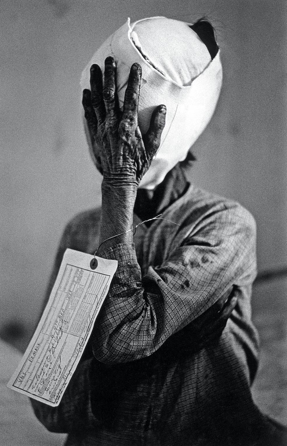 «Esta foto de Griffiths es una de mis preferidas de la guerra de Vietnam. Es una persona viva estando muerta, parece momificada. Y esa etiqueta... Philip me contó que los americanos eran tan perfeccionistas, tan del gusto militar, que ordenaban y etiquetaban todo, incluidas las personas, que se convertían así en objetos. Esa mujer, con la cabeza quemada, posiblemente por napalm, se ha quedado sin identidad, sin rostro. Sólo le queda esa etiqueta.»