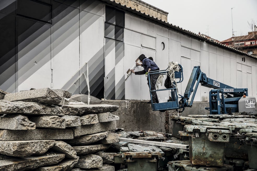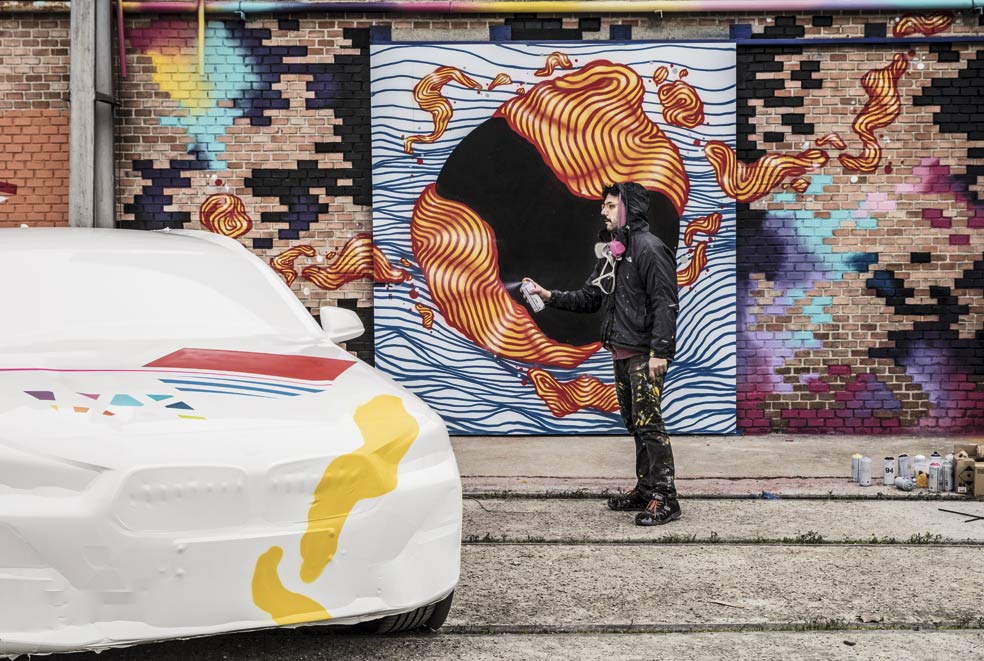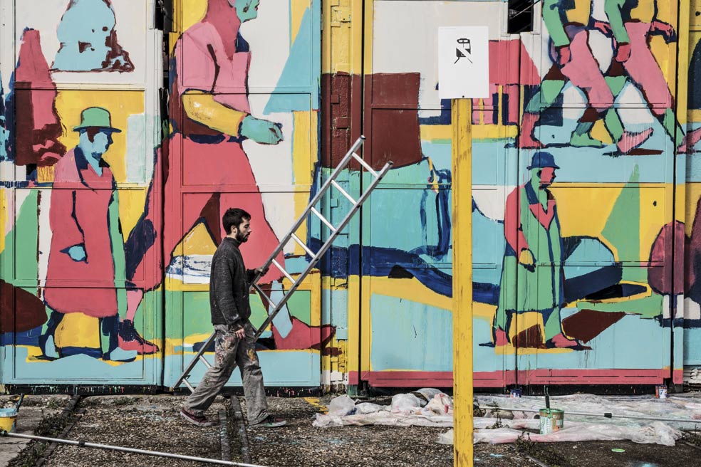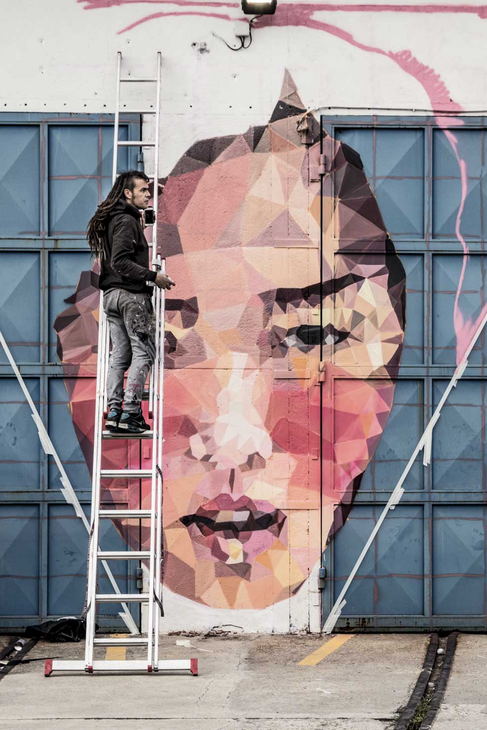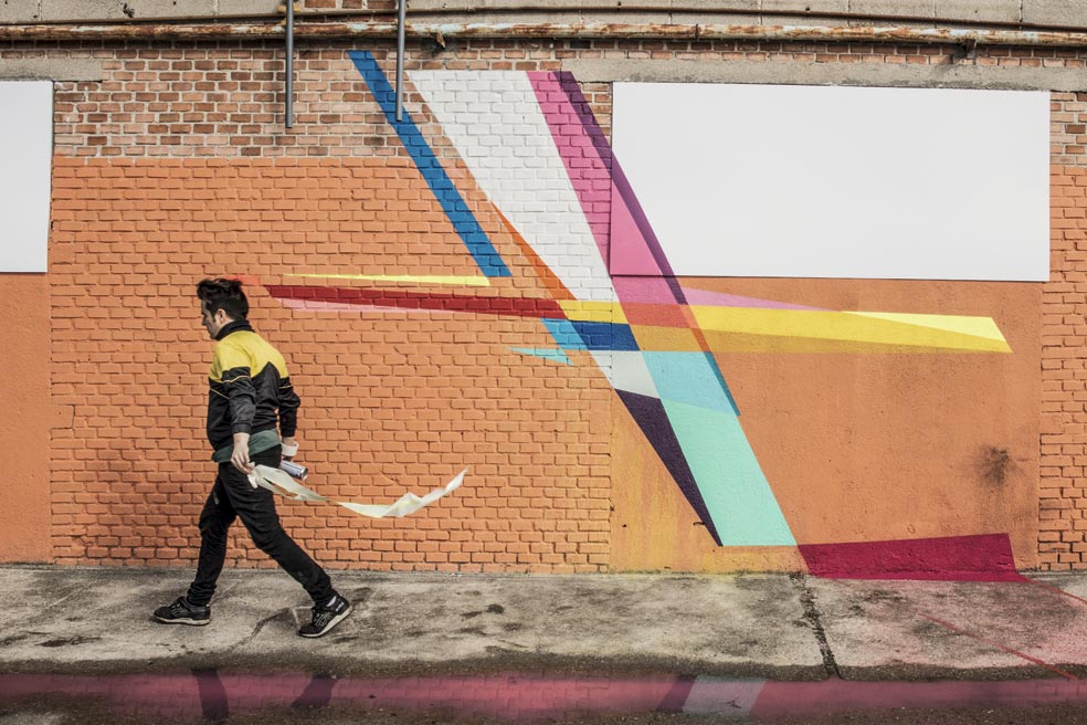 Aryz, radicado en Barcelona, empezó a pintar con aerosoles cuando era un adolescente. Confiesa que de tanto apretar los botes ha llegado a lesionarse un dedo y ahora los combina con pinceles. Ha pintado en una docena de países, desde Estados Unidos a Ucrania. «Las fábricas abandonadas son un lugar perfecto. Tienen superficies muy variadas y dimensiones enormes impensables en papel o lienzo».