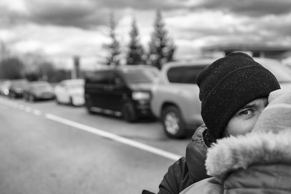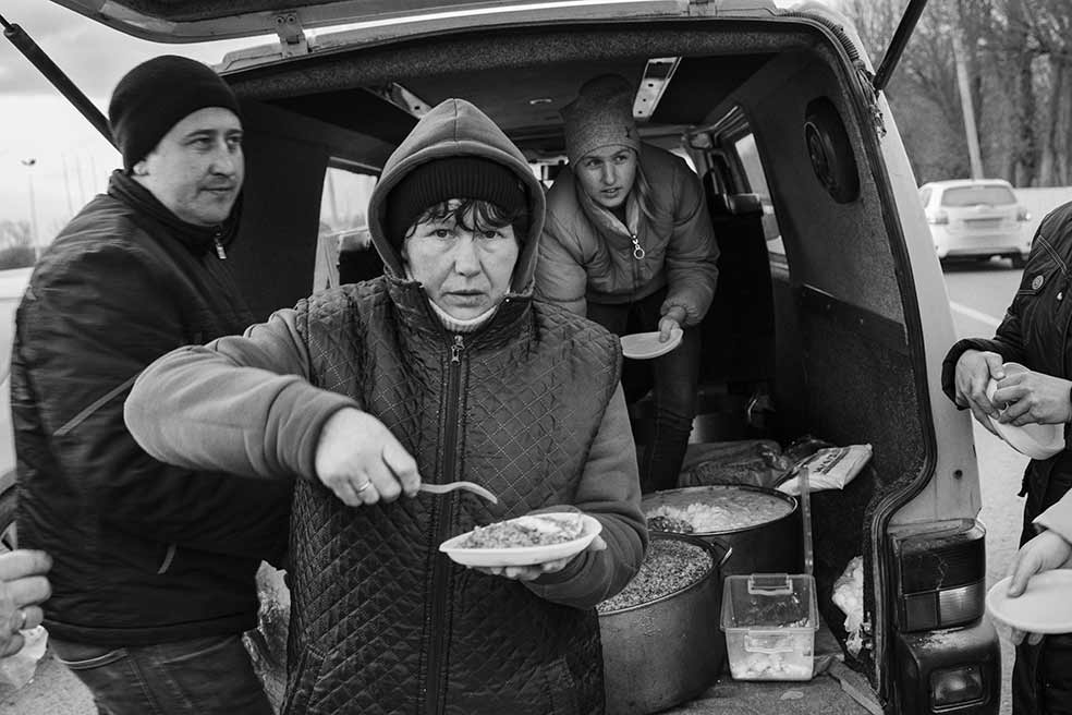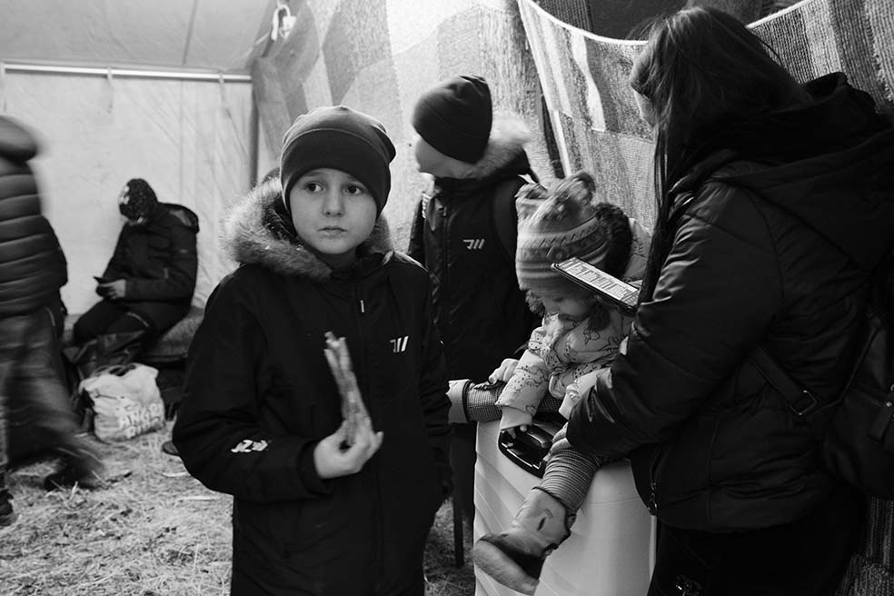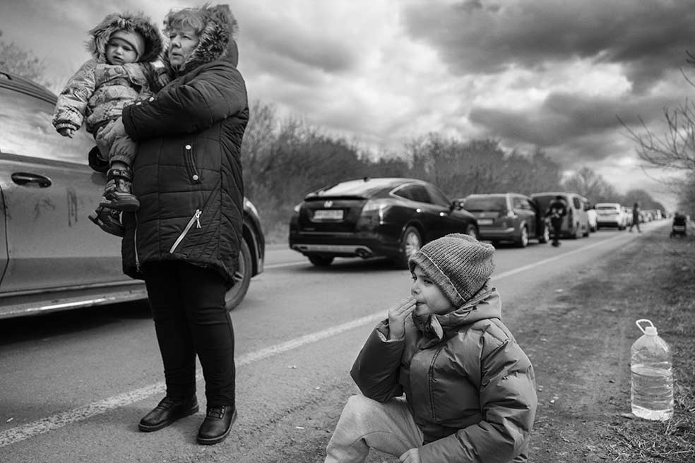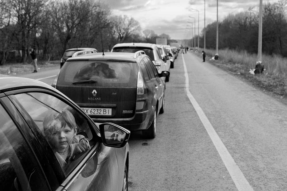 El hijo de Olga Cluyva mira desde la ventana de su coche, convertido en una especie de hogar itinerante desde hace tres días. Olga huye con sus dos hijos. A su marido le pilló el inicio de la guerra en viaje de trabajo en el extranjero. Ahora, su objetivo es llegar a Rumanía. Desde ahí intentará atravesar Hungría y Eslovaquia, camino de Polonia, donde la esperan su esposo y varios familiares.