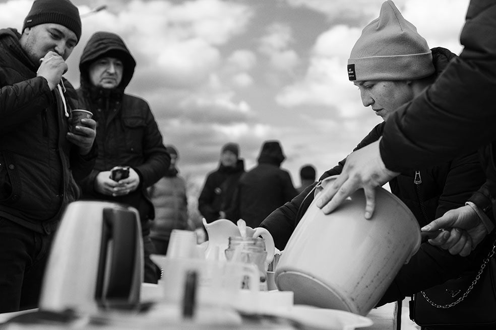 La población local que vive junto a la frontera se ha volcado con los refugiados que huyen de Ucrania. Varias parroquias locales y las juntas comunales de los pueblos de la región se han organizado para repartir comida, mantas y enseres de primera necesidad entre la población bloqueada en las colas.