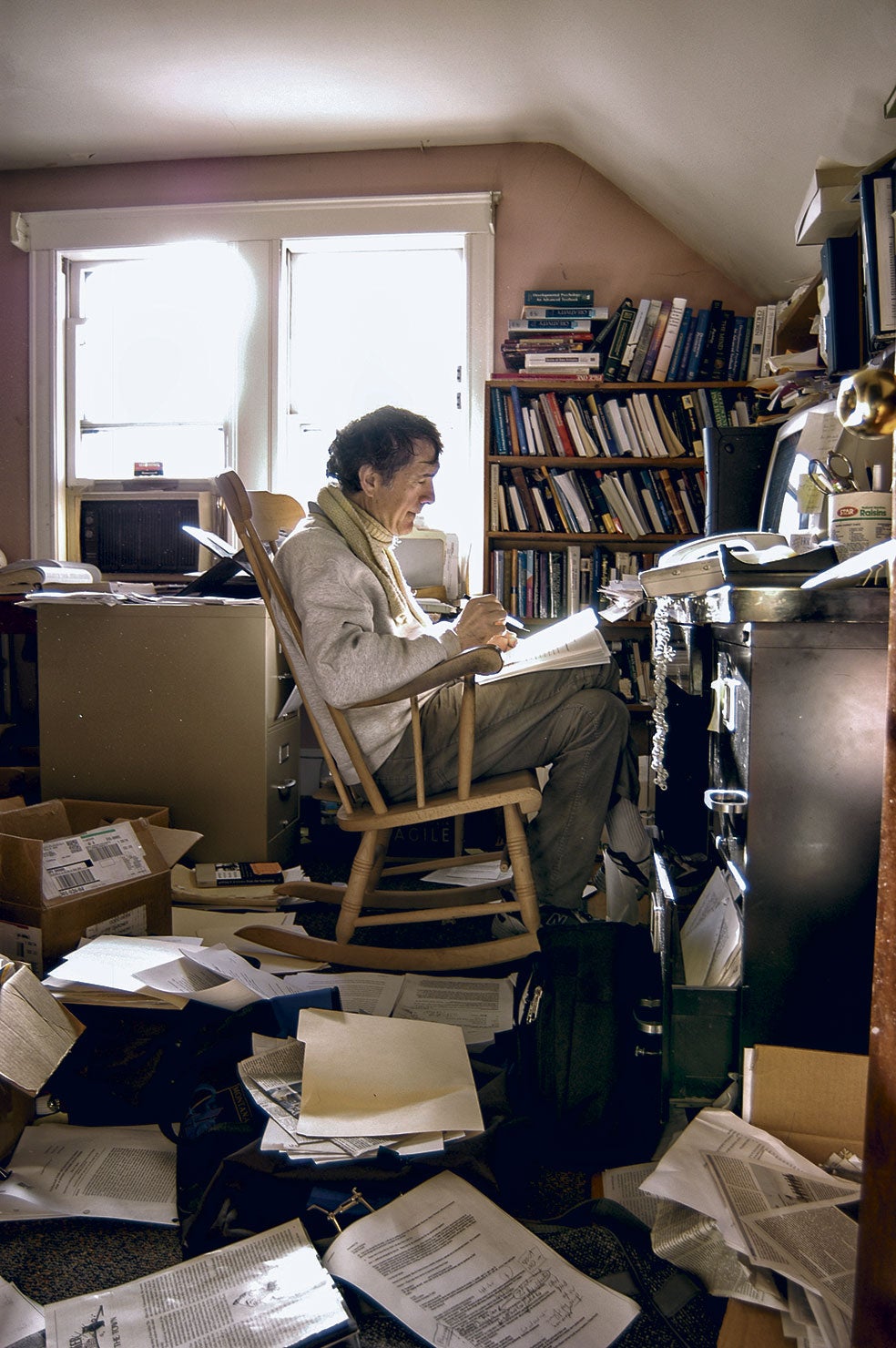 Howard Gardner —aquí retratado en su casa por su hijo Jay hace unos años, prueba de que la inteligencia no está reñida con el caos...— es plenamente consciente de los peligros derivados de la inteligencia artificial .
