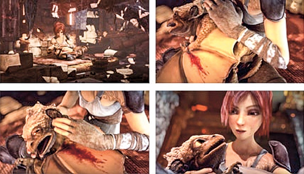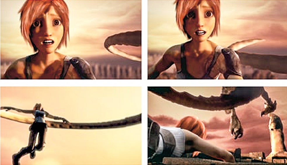 A los voluntarios del experimento se les muestra la secuencia de arriba de un cortometraje animado, sin diálogos. La inteligencia artificial, al leer su escáner cerebral, escribe: «Estaba muy débil. Sostuve su cuello para controlar su respiración».