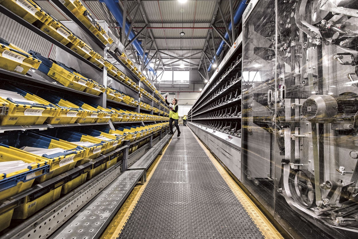 «El objetivo es que todo lo que entra salga en el día», dice Maite Fernández Lastra, directora del Centro de Tratamiento Automatizado de Correos en Vallecas (Madrid). Y cada día entran (y salen) entre 3, 4 y 5 millones de cartas, y entre 50.000 y 100.000 paquetes. Las cartas que se envían desde las comunidades de Madrid y Castilla La Mancha, pasan por aquí. Todas. Y se reenvían al Centro de Tratamiento Automatizado (CTA) de destino: hay 18 que gestionan 6,6 millones de envíos diarios. Cada carta pasa por un escáner y luego por una máquina de clasificación –a un ritmo de 40.000 cartas por hora– que transforma la dirección de destino en un código de barras que imprime en el sobre o el paquete. Desde aquí, el envío viajará a otro CTA, donde lo recogerá el cartero. Todo automatizado, salvo que la letra sea ilegible. Entonces una persona hace la clasificación.
