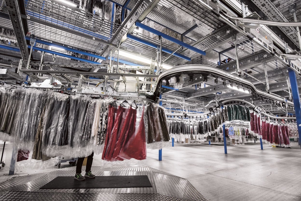 Todas las prendas de las marcas del grupo Inditex cuentan con una pequeña alarma –aparte del sistema antirrobo- que incluye un sistema de identificación por radiofrecuencia. Así las identifican de manera individualizada y saben dónde se encuentran en todo momento, desde la producción hasta su venta. El ahorro en costes y tiempo de este sistema es enorme, ya que evita, por ejemplo, abrir cajas para ver qué prendas contienen. También se usa en sus centros logísticos, como el de Plataforma Europa (en la imagen), en Zaragoza. Tiene 180.000 metros cuadrados y crecerá más este año con la construcción de un silo robotizado y otro edificio. Desde aquí salen 600 camiones semanales y 52 cargueros desde el aeropuerto de Zaragoza hasta Europa, América, Oriente Medio y Asia. Unas 2.000 tiendas se nutren de su mercancía.