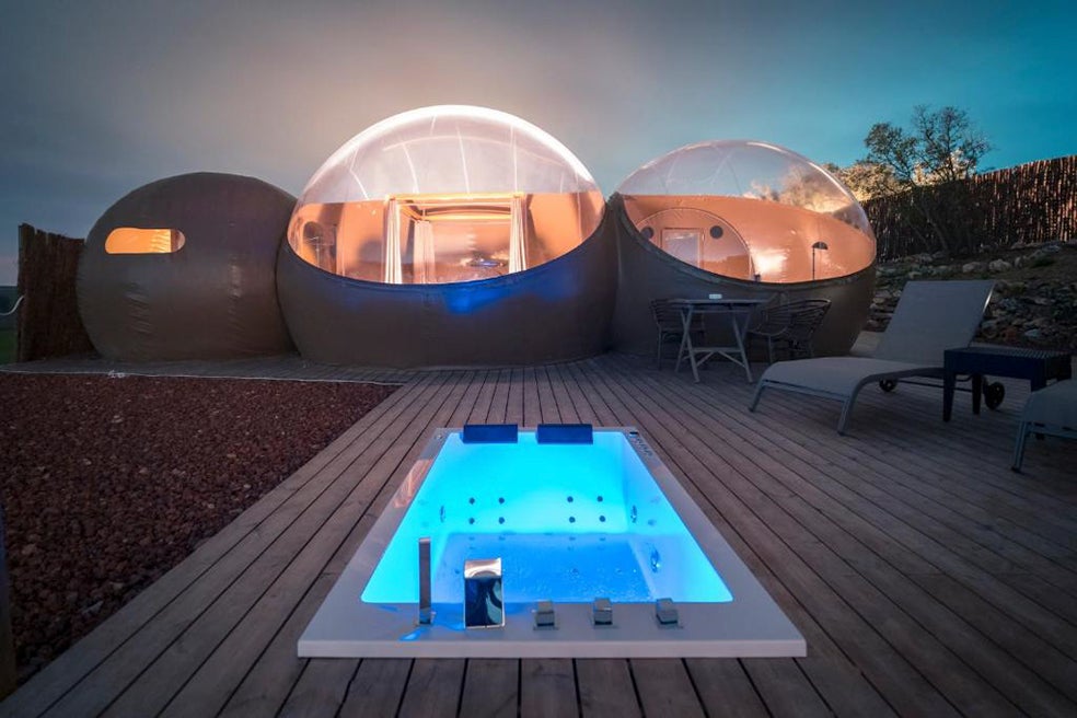 En mitad del campo toledano (en Hormigos) se encuentra Miluna Rooms, habitaciones burbuja, cada una con el nombre de una luna, y equipadas como un hotel de lujo: cama king size, amenities de firma, un moderno telescopio y libros sobre la Luna. El hotel, además, ofrece las mejores opciones de restauración, masajes, un flotarium y paquetes de experiencias para convertir tus días en recuerdos inolvidables.