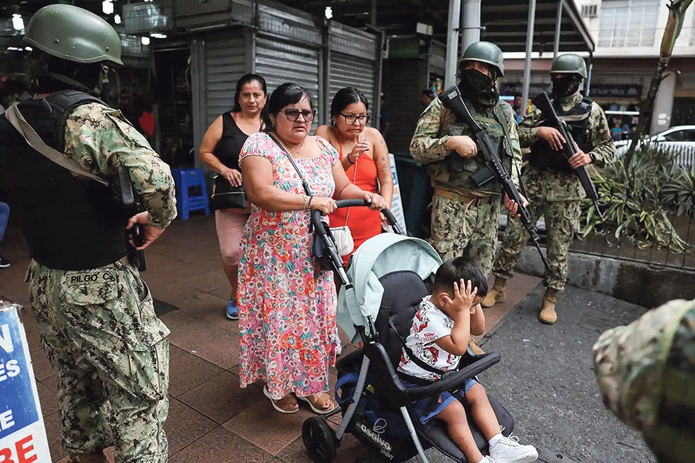La violencia en el país se ha multiplicado por las 'guerras del narcotráfico'. En estos tres años ha habido asesinatos de políticos en plena calle, asaltos con dinamita a cadenas de televisión en pleno directo, motines en prisiones con decenas de muertos... También los menores son víctimas. El año pasado, dos niños fueron asesinados cada día en Ecuador.