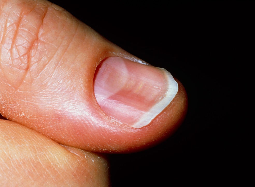 UÑAS 'ESFERA DE RELOJ'Las uñas que presentan un abombamiento exagerado suelen aparecer con mayor frecuencia en casos de déficit crónico de oxígeno en sangre o en los estadios finales de enfermedades hepáticas. Aún no se ha podido explicar completamente su origen.