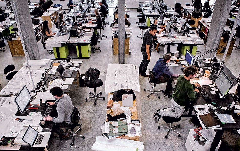 La oficina abierta regresó en los 90: el flujo de información se aceleró y, con él, el ritmo de trabajo. Las oficinas pasaron a ser entornos sociales y la colaboración en red y el intercambio de ideas se volvió esencial. Silicon Valley marcó el paso introduciendo mesas de pingpong, futbolines, salas de siesta... y hasta ejecutivos en calcetines.