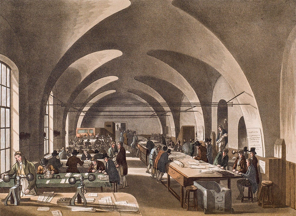 Las ilustraciones preindustriales muestran cómo, desde el Renacimiento, las labores de papeleo y de gestión de los palacios y de las primeras empresas burguesas se realizaban en 'bibliotecas' que eran, en realidad, oficinas; los documentos allí redactados eran registros, expedientes, no obras de ficción o poesía.