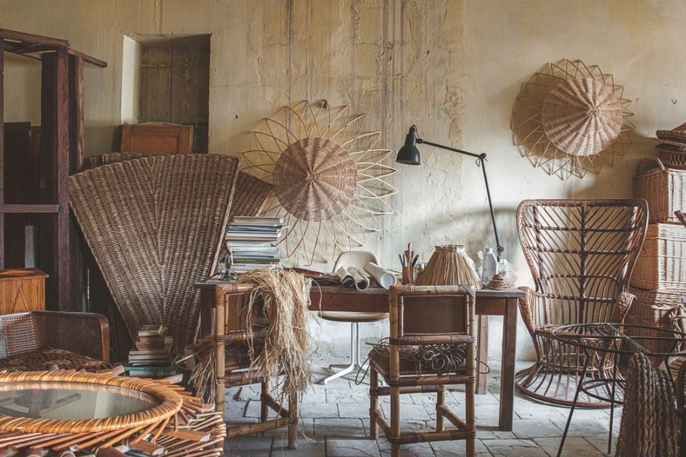 Así lo descubrieron Anthony Watson –un estilista británico-francés– y su pareja, Benoît Rauzy, en 2016 cuando llegaron a Vallabrègues, un pueblo de la Provenza francesa conocido desde hace centenares de años por su artesanía en torno a la cestería y al trenzado del mimbre. Convencidos del valor de aquel patrimonio artesanal, la pareja decidió establecer su propio taller, el Atelier Vime, para recuperar la tradición y ofrecer una selección de objetos y muebles antiguos de cestería, ratán o cuerda firmados por diseñadores famosos (como Janine Abraham o Audoux-Minet…) y artistas anónimos.