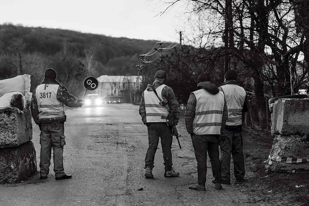 Toda Ucrania está salpicada de controles y retenes gestionados por milicianos. «Comprobamos la identidad de todo el mundo para evitar infiltrados –explica Stanis, comandante partisano local–. Necesitamos protegernos de los saboteadores rusos». Muchos recuerdan a los guerrilleros ucranianos que lucharon contra Moscú tras la Segunda Guerra Mundial, donde mataron a más de 30.000 soviéticos.