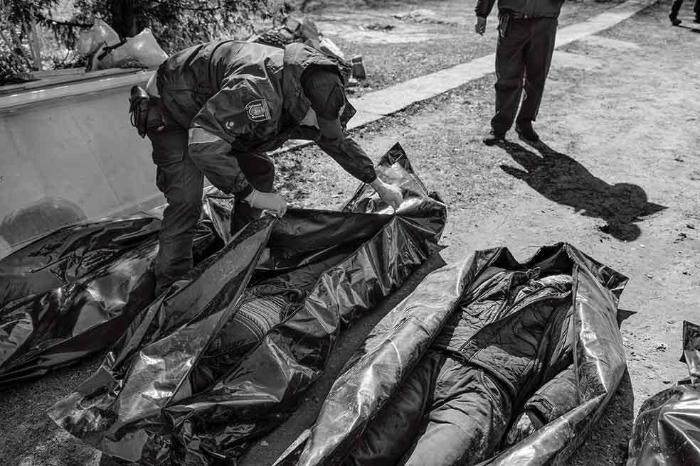 Bucha es el símbolo de las atrocidades rusas en Ucrania. Se han hallado ya más de 1000 cadáveres. La Policía busca documentos entre sus ropas para intentar identificarlos. «Los rusos han demostrado de lo que son capaces en Bucha, Irpín, Mariúpol... –sostiene el comandante Stanis–. Quieren exterminarnos y no nos queda más remedio que luchar porque Europa y la OTAN nos han dejado solos».