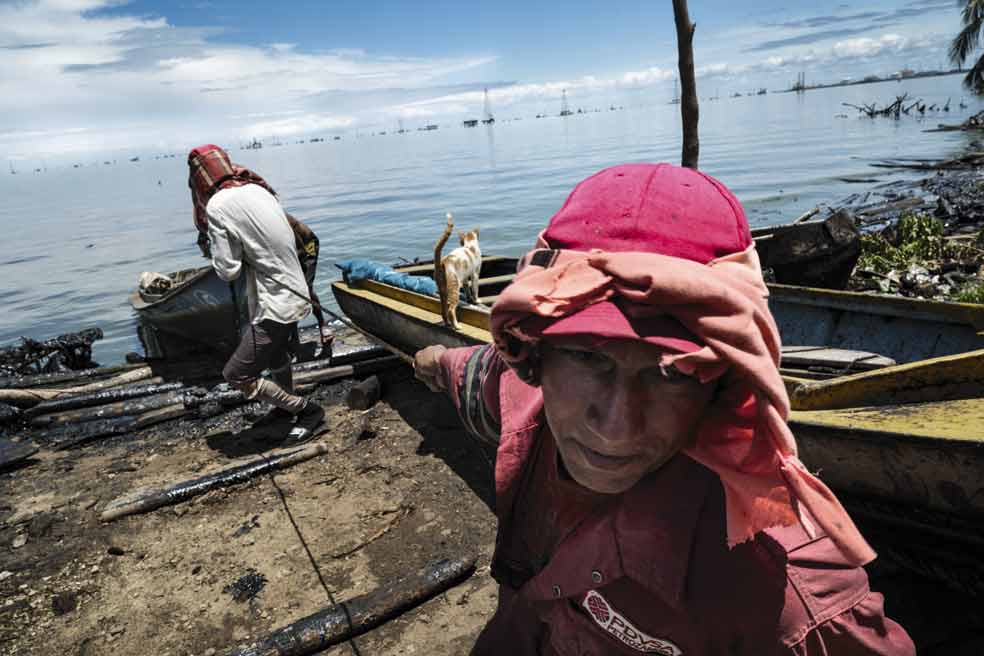 La crisis política, la mala gestión de los gobiernos bolivarianos y las sanciones internacionales han convertido a PDVA (Petróleos de Venezuela Sociedad Anónima) en un ... coloso en ruinas. El lago Maracaibo, uno de los grandes yacimientos del mundo, es hoy un inmenso complejo de chatarra donde los pescadores como John José (foto) intentan ganarse el pan entre aguas completamente contaminadas.