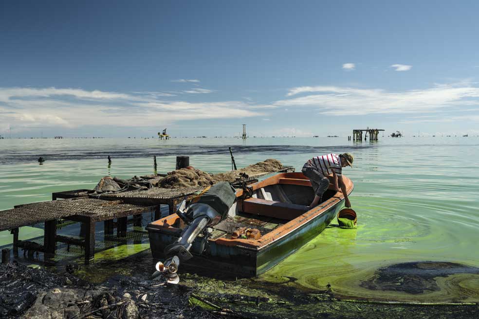 La degradación del lago es una de las mayores catástrofes medioambientales de todo el continente americano. Tomadas por los vertidos de petróleo y químicos, las aguas han mutado en un nuevo ecosistema dominado por el limo, un alga que se alimenta de la contaminación del lago –fenoles, mercurio...– y convierte su superficie en una masa pastosa de color verdusco. Aun así, la población local se sigue bañando, expuesta a graves enfermedades.