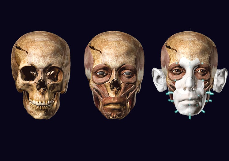 2. A MANO Y A MÁQUINA. Después arranca el proceso de recreación de tejidos y músculos. «Los músculos se esculpen en cera y después se escanean. Me muevo entre la escultura tradicional y la digital», explica el antropólogo forense Chris Rynn.