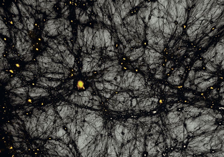No parece. O no lo parecía, hasta ahora. Hay muchas investigaciones y observaciones que avalan la existencia de la materia oscura, por ejemplo, los estudios del efecto de lente gravitacional (perdón, otro 'palabro'). Y su existencia, obviamente, no se sustenta en fórmulas tan elementales como la citada unos párrafos antes, sino en complejos enunciados de física que han sido replicados computacionalmente.