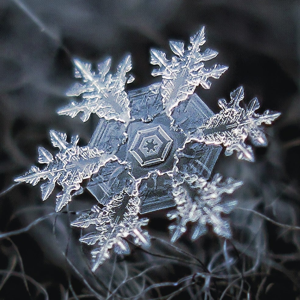 Anotó Kepler, asombrado, que los copos de nieve son hexagonales y geométricos. Pensó que la forma hexagonal era una eficaz estrategia de la naturaleza para ... empaquetar partículas y por eso las celdas de las colmenas de abejas también son hexagonales. Efectivamente, muchos copos de nieve son hexagonales, pero hay una enorme y sorprendente variedad de ellos: la clasificación Magono and Lee incluye hasta 80 tipos diferentes de copos de nieve. Los hay con forma de estrella, sí, pero también los hay con aspecto de columna, de aguja, de prisma, de triángulo...