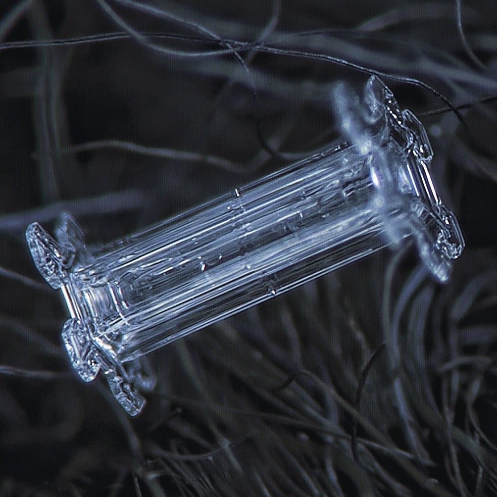 Los que tienen forma de columna hueca o de aguja se forman a una temperatura de alrededor de -5°C. Y son muy pequeños. En 1988 la científica del Centro Nacional para la Investigación Atmosférica Nancy Knight documentó dos cristales idénticos, lo que cuestionaría la teoría de que no hay dos iguales. Pero este hallazgo fue a su vez cuestionado por el profesor de física del Instituto Tecnológico de California (Caltech) Kenneth Libbrecht que argumenta que, aunque se parezcan, son distintos si se examinan a nivel atómico, ya que su número de moléculas de agua y la disposición de estas en su estructura serían siempre distintas.
