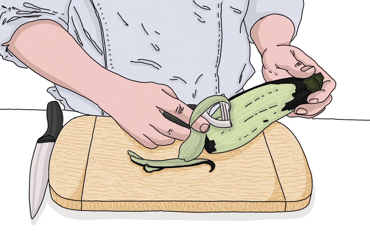 Para empezar con la receta de lasaña de berenjenas, se pelan las berenjenas, se cortan en rodajas medianas y se doran por ambos lados en una sartén con unas gotas de aceite de oliva.