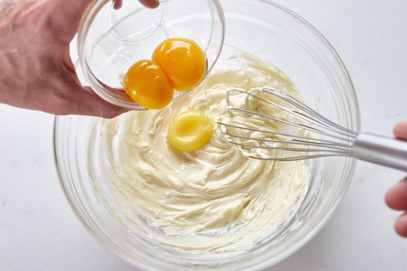3. Se derrite la mantequilla en un bol y se mezcla con el azúcar y las yemas. Se bate hasta que quede una crema homogénea.
