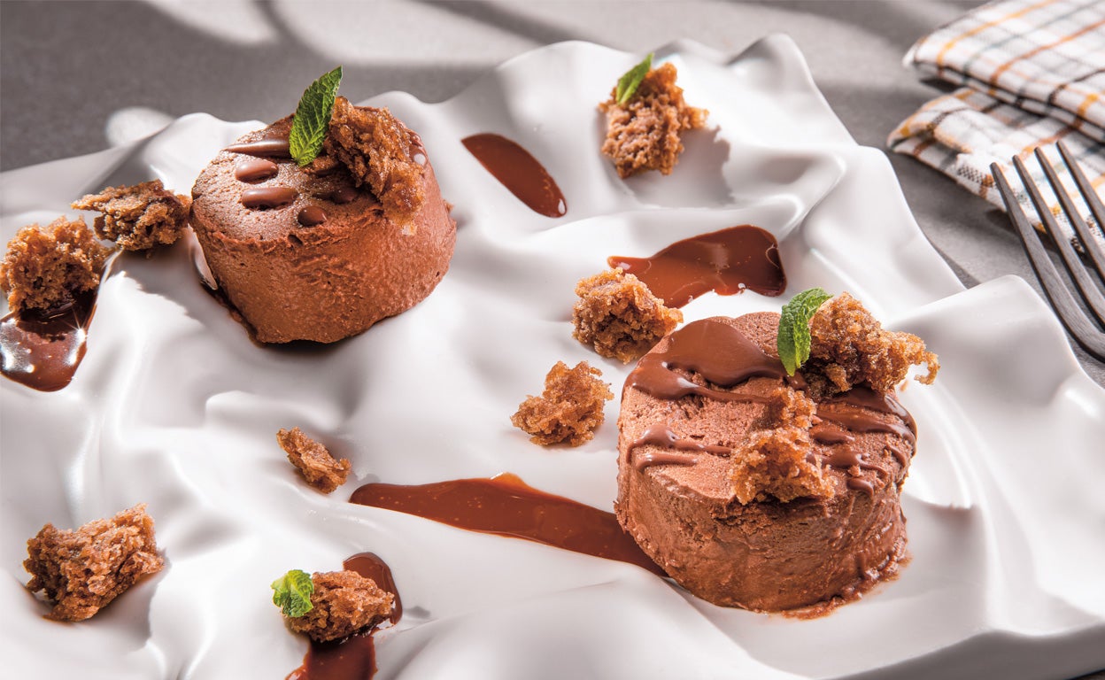 Enlace a la receta:'Parfait' de chocolate con bizcocho de praliné
