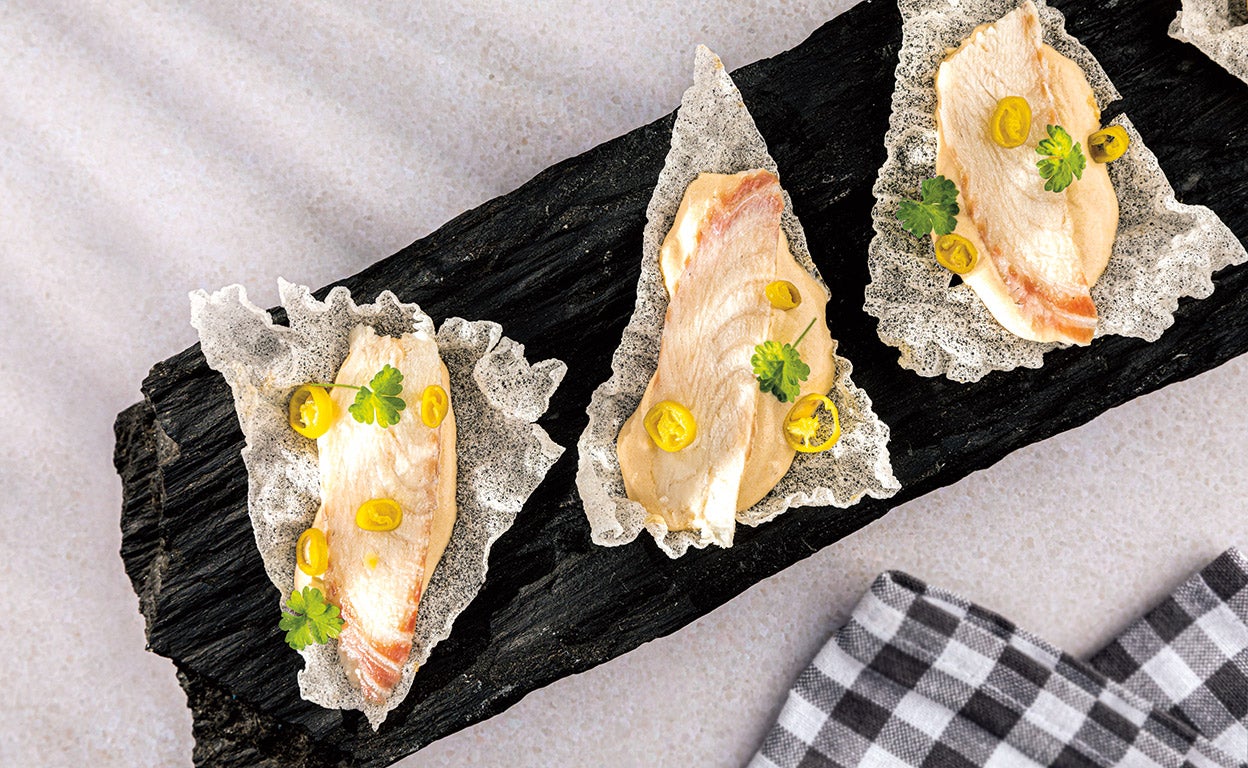 Enlace a la receta: Chips de arroz con anguila ahumada