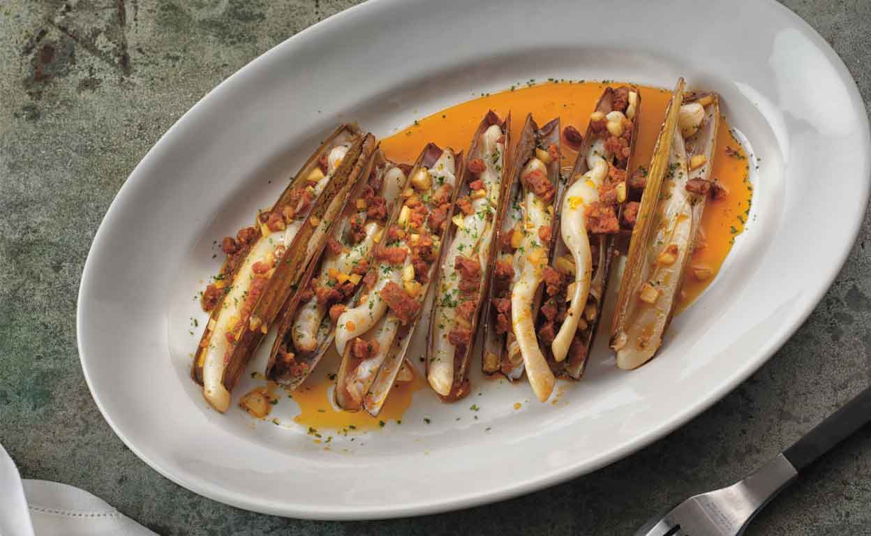 Enlace a la receta: Navajas con chorizo y 'txakoli'