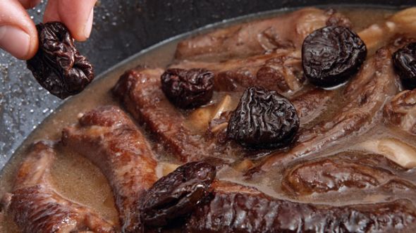 4. Se termina el guiso añadiendo las ciruelas cortadas en 2 mitades.