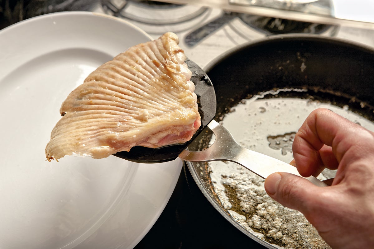 3. Presentación y acabado: se añade el resto de la mantequilla a la sartén para darle el punto 'avellana', que es ese en el cual la mantequilla adquiere color, pero sin que llegue a quemarse.