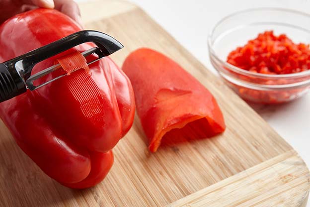 Se pica también la cebolleta y se lavan los pimientos y las cebolletas.
